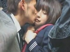 混んでることいいことにJKをバスの中で痴漢!もはや痴漢というよりもコレはほとんどレイプw幼気なセーラー服姿のJKにフェラまでさせてますw