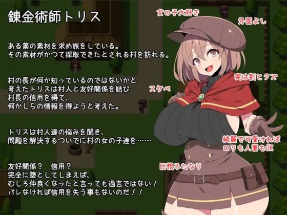 見た目に反してスケベなクズ主人公トリスを動かし、立ち寄る村で若い女性をレイプしまくるレズレイプ系RPG。